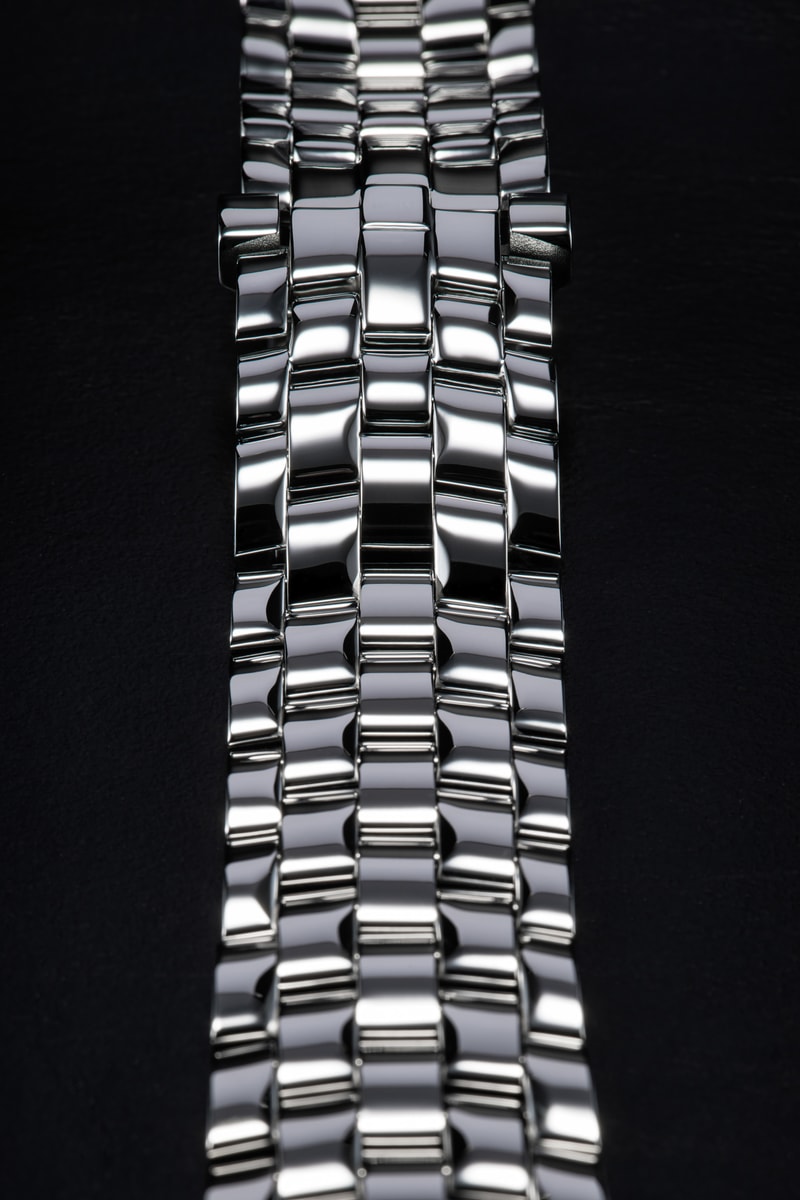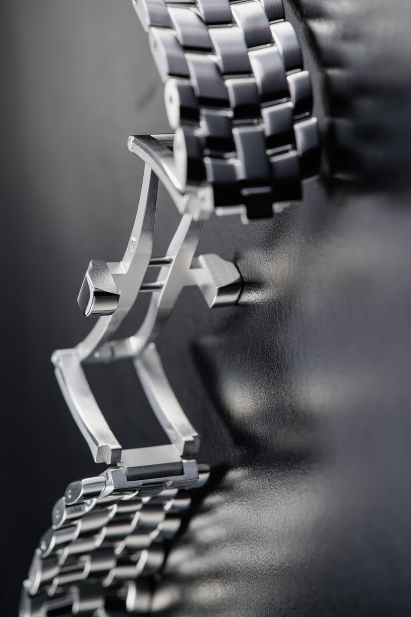 An update to the popular original – whose own design originated with the Abyss diver – it now reflects the flowing and complex compound curves of our new cases, especially the 37-series. The bracelet is now a bit dressier than the previous version, with a polished top and brushed sides making for a harmonious transition between lugs and end-links. You’ll also notice that same transition has a nice flow in volume and shape between the lug and subsequent link elements.