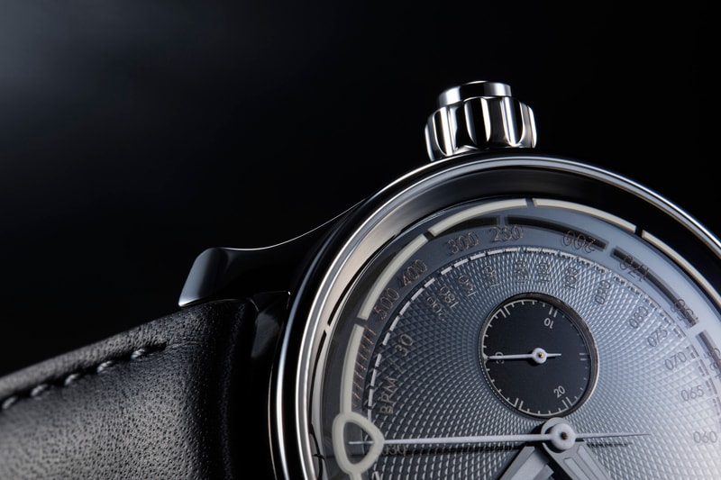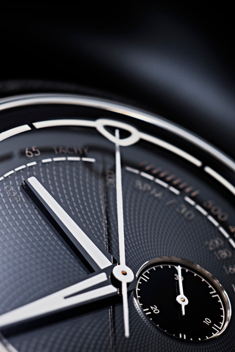 Topping this is a black guilloche dial by Comblemine – a dial producer that requires little introduction. This dial is in turn covered by a sapphire layer that embeds the various chronograph scales (minutes, pulsometer, tachymeter) at different levels and in Super-LumiNova X1 to further enhance depth and legibility. We sank the chronograph minute counter - also luminous embedded - into the metal dial and eliminated running seconds in the interests of minimalism.