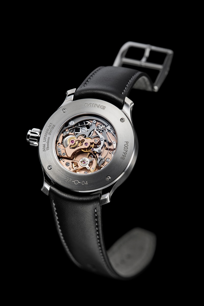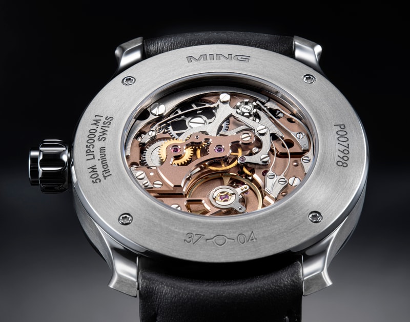 Not long ago, we found, secured and reworked a number of the right movement in time to announce reference #50 for our 5th anniversary celebrations. Back in the 90s, a certain group formed of Messers. Journe, Halter and Flageollet designed a hand-winding monopusher chronograph movement that would find fame in a tortue-shape case; it is an improved version of this very same movement which you will find inside our new 37.04. The movements have been overhauled, updated and refinished by La Joux Perret in La-Chaux-de-Fonds to our specifications, with new skeletonized bridges receiving a classical grained 5N rose gold coating and hand-polished anglage in the style of our 19.02 and 19.05.
