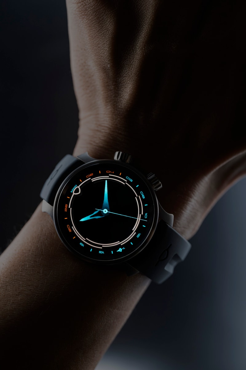 Speaking of luminous indications, the top crystal carries the hour indices in MING Polar White, and new to the Odyssey is the hand set which includes – for the first time ever – a gradient luminous treatment. This is a watch you’ll want to take out at night. Water resistance is a little less than the Bluefin at 300m as we elected to keep the existing case dimensions and find space internally to accommodate the slightly thicker movement and GMT hand. If the extra 300m is critical, might we suggest a Bluefin, a Uni, or a submarine?