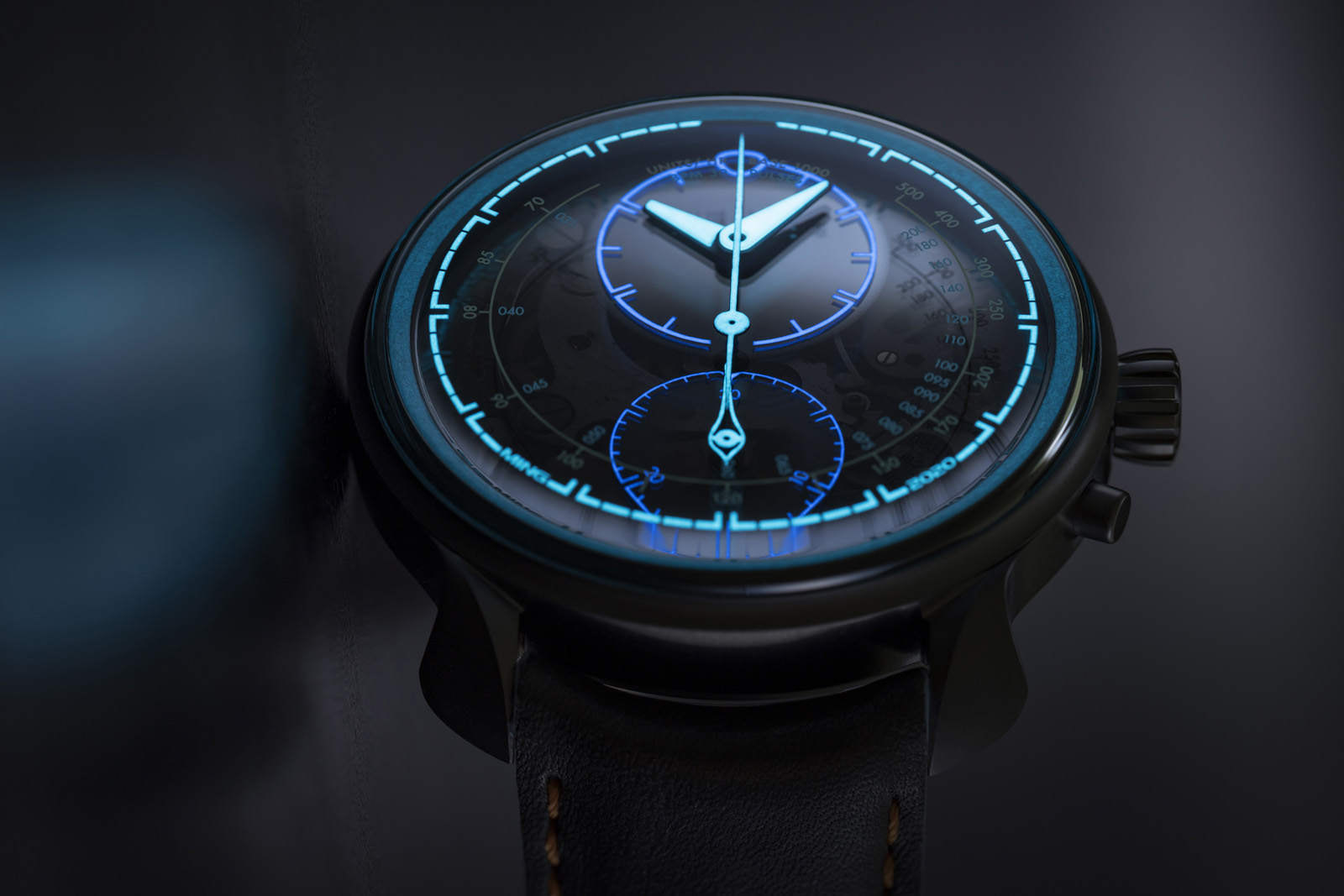 The 19.CR Monopusher is a special subscription piece created for our customers who supported the development of the metallized gradient on sapphire and Globolight luminous hands processes. Seven watches will be produced and the watch features a vintage Venus 140 movement with monopusher function, 30-min chrono counter and manual winding.